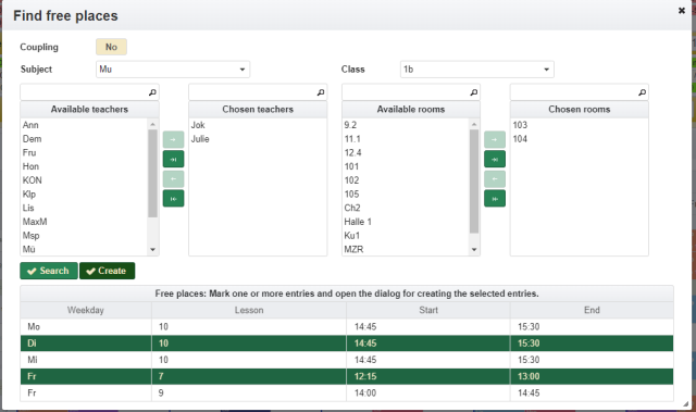 gewünschten Klasse (dem Lehrer oder Raum) gefragt. Sollte die