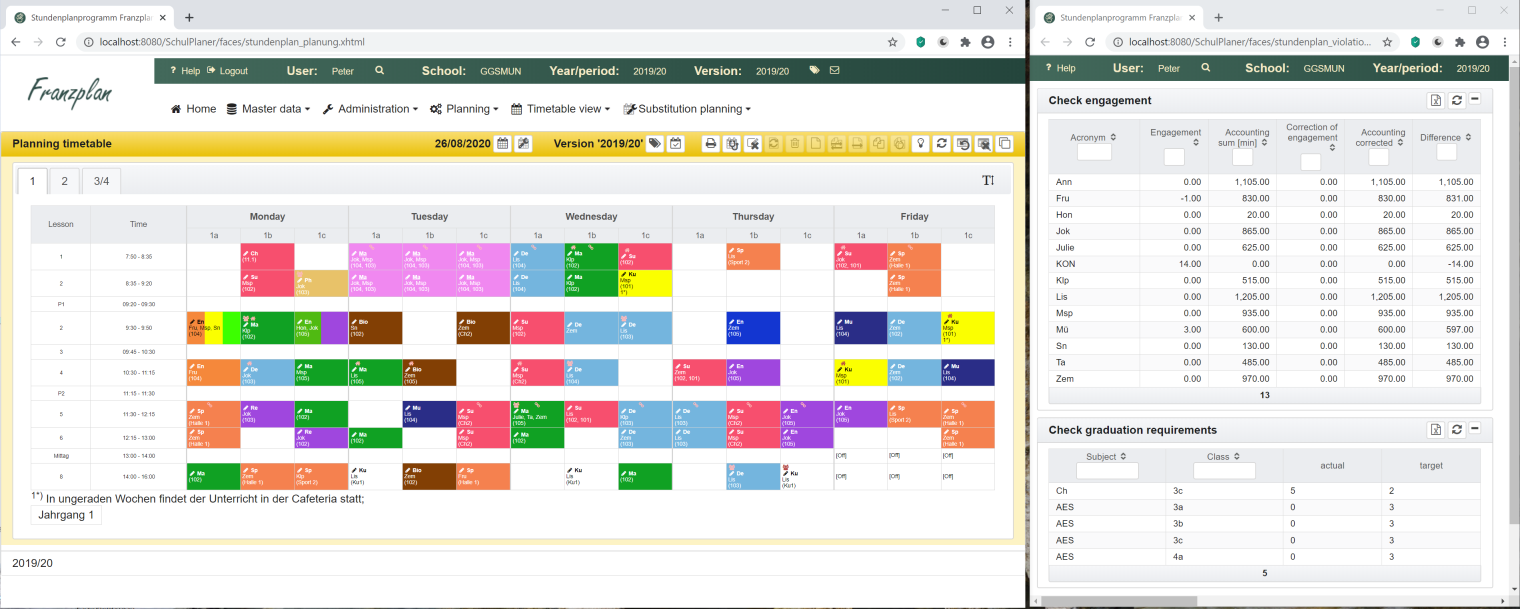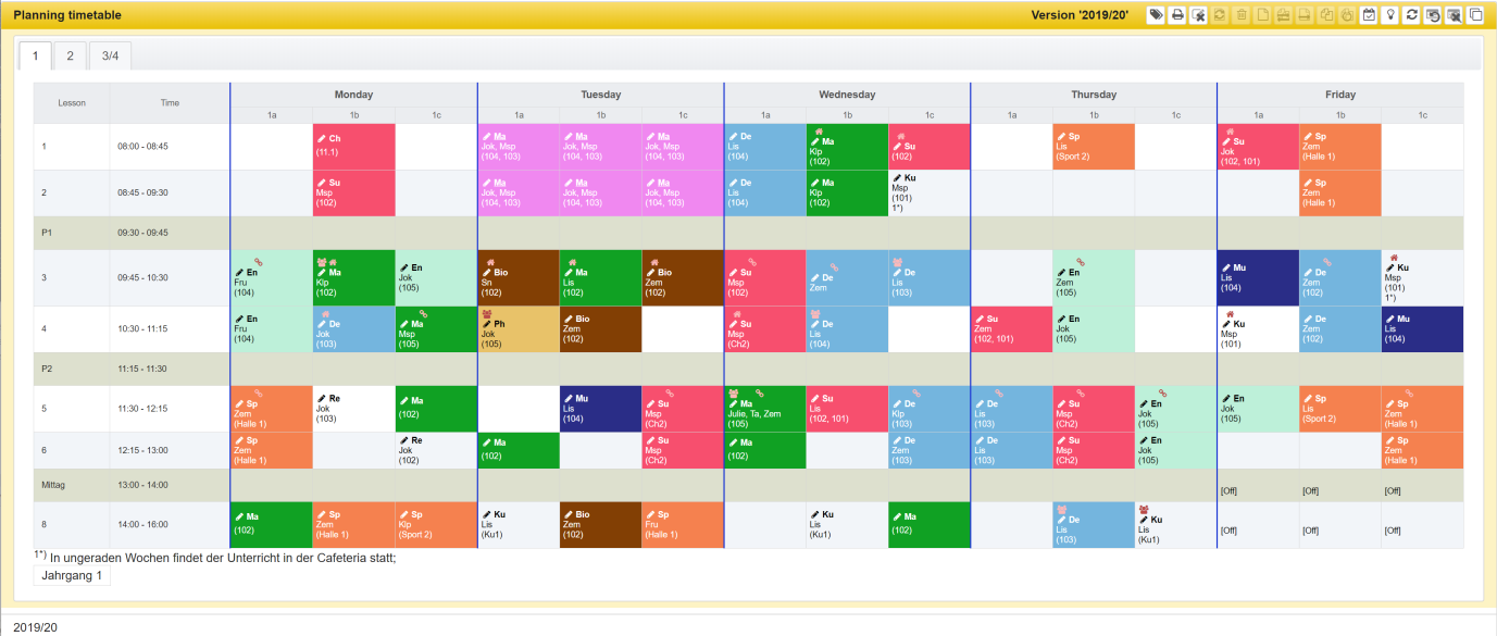 Stundenpläne für Lehrer, Räume oder Klassen. Die Planung kann allerdings