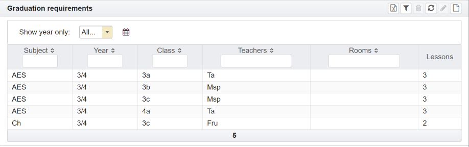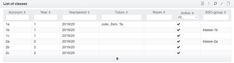 Die Bedienung der Ansichten für Klassen, Lehrer oder Räume erfolgt im