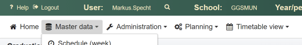 Kopfzeile und klickt auf den Menüpunkt Schulparameter.