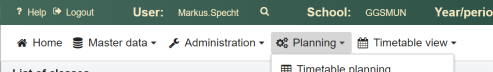 Aus der Planungsansicht kann der Stundenplan für alle Klassen exportiert werden. Erzeugt wird ein JSON-Format.